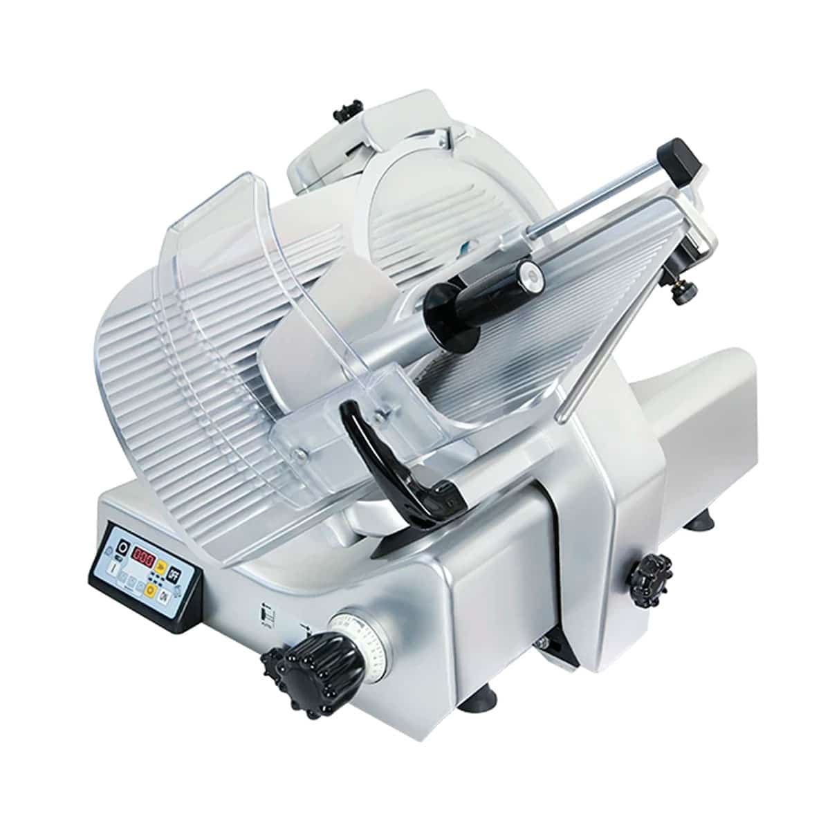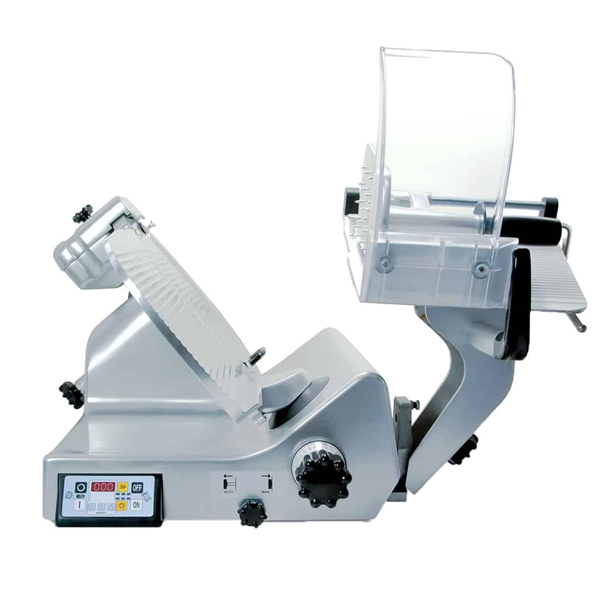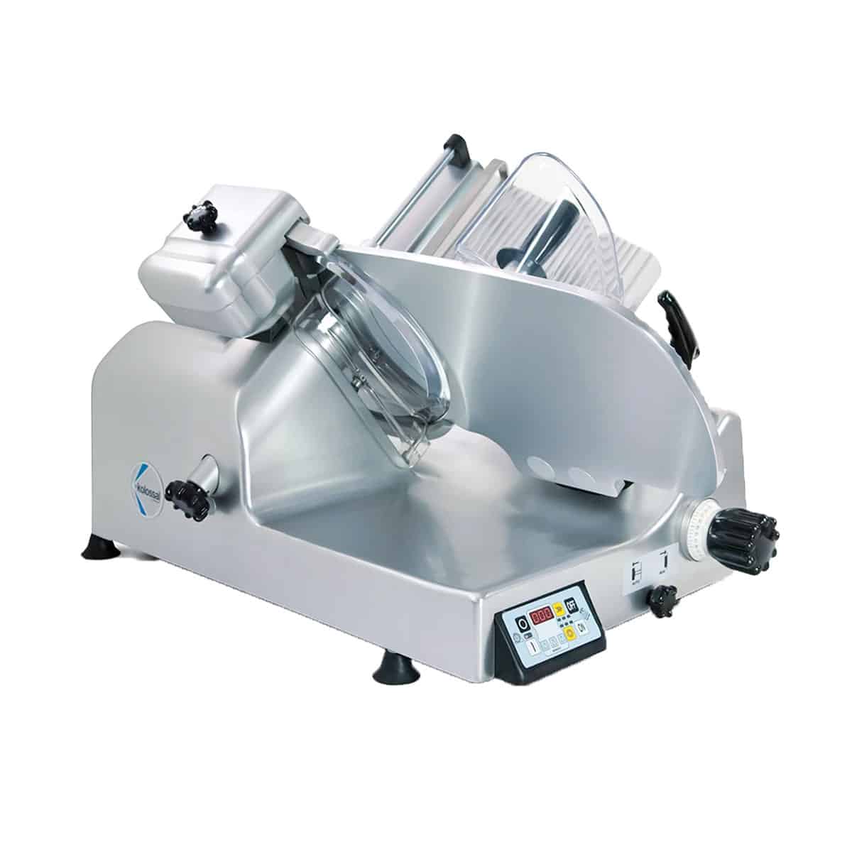 Cortador inclinado Kolossal 330 para cortar todos os tipos de enchidos, queijos e carnes cozinhadas. O funcionamento automático é simples, intuitivo e fácil de utilizar.