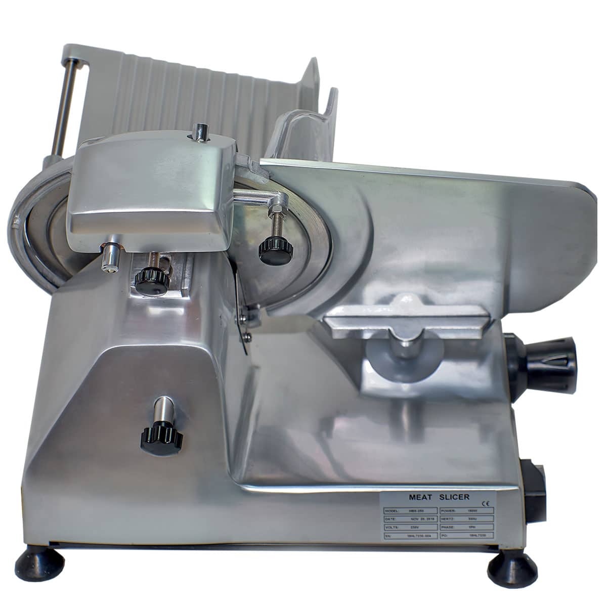 Potência: 150 W. Dimensões totais A: 480 B: 380 C: 390 mm. Dimensões da base de apoio D: 410 E: 280 mm. Capacidade de corte: 180 x 140 mm. Capacidade de corte Ø: 160 mm. Espessura máxima de corte: 13 mm. Afiador incorporado.