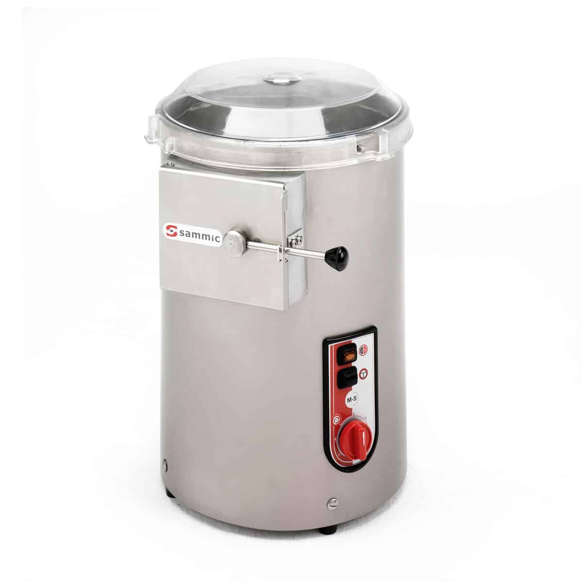 Com capacidades até 5 kg por operação, efectuam o descasque abrasivo, que abrasa a superfície do produto por fricção. O abrasivo é extremamente resistente e durável e adequado para utilização alimentar. Equipado com painel de controlo com botão de arranque, paragem e temporizador de 0 a 6 min. O descascador pode ser complementado com um suporte e um filtro anti-espuma para descascar. O descascador Sammic Inox Compact é um modelo compacto com uma capacidade de 5 kg por ciclo e foi especialmente concebido para espaços pequenos. Muito fácil de instalar, pode ser colocado junto a um lava-loiça para escoar. Opcionalmente, pode ser equipado com um suporte e um filtro. Fabricado em aço inoxidável, efectua o descasque abrasivo, que abrasa a superfície do produto por fricção. O abrasivo é extremamente forte e durável e está localizado na placa. O descascador M-5 está equipado com um sistema anti-retorno na entrada de água. O painel de controlo tem um temporizador de 0-6 min. com a opção de funcionamento contínuo.