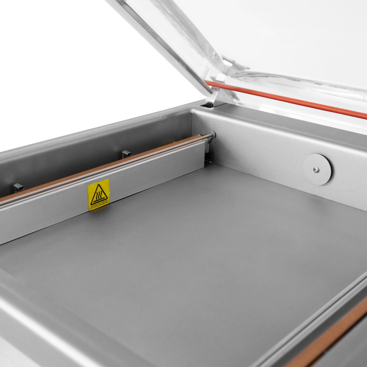 Embala sacos até 50 x 45 cm. Todos INOX. Digital. Permite o ensacamento a vácuo a partir do exterior da câmara. Bomba com sistema BUSCH.