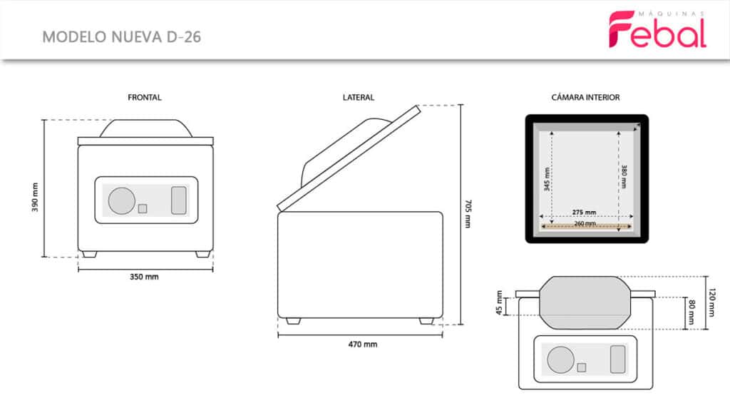 | Dimensões da câmara | 275 x 380 x 120 mm. |