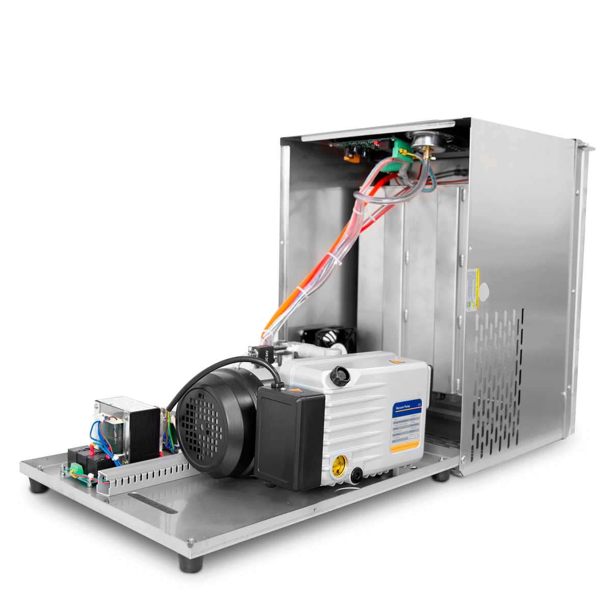 – Placa de fibra com pés para o interior da câmara – Pano de fibra para a substituição da barra de vedação – Resistência para a barra de vedação – Junta de silicone para a tampa – Óleo para encher a bomba de vácuo
