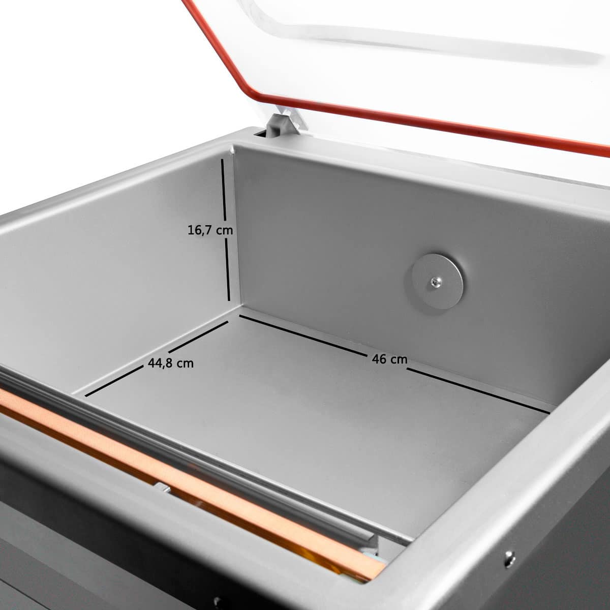– Placa de fibra com pés para o interior da câmara – Pano de fibra para a substituição da barra de vedação – Resistência para a barra de vedação – Junta de silicone para a tampa – Óleo para encher a bomba de vácuo