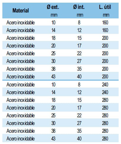 – Opção de funis em aço inoxidável de diferentes diâmetros e comprimentos.