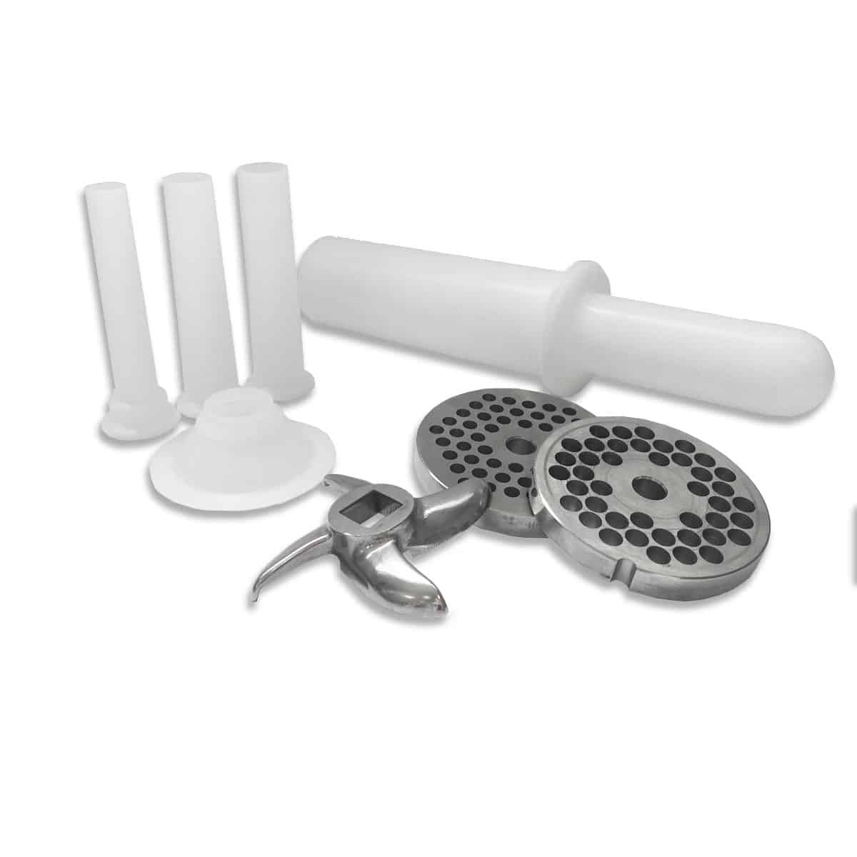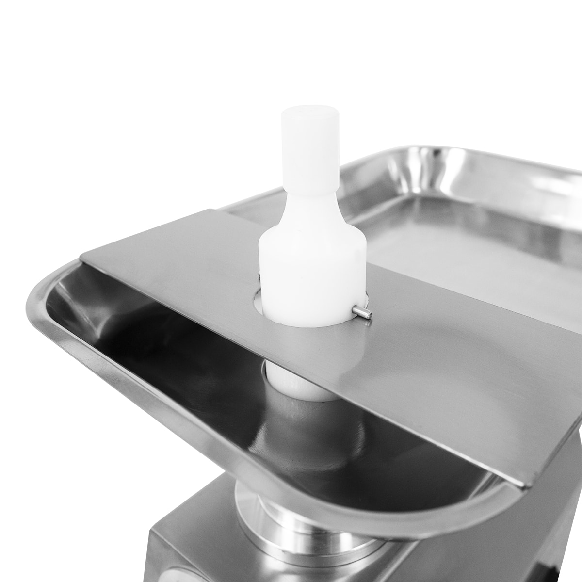 – Equipado com 2 lâminas, 2 placas (orifício de 6 e 8 mm), empurrador e funis (19, 17 e 12,5 mm).