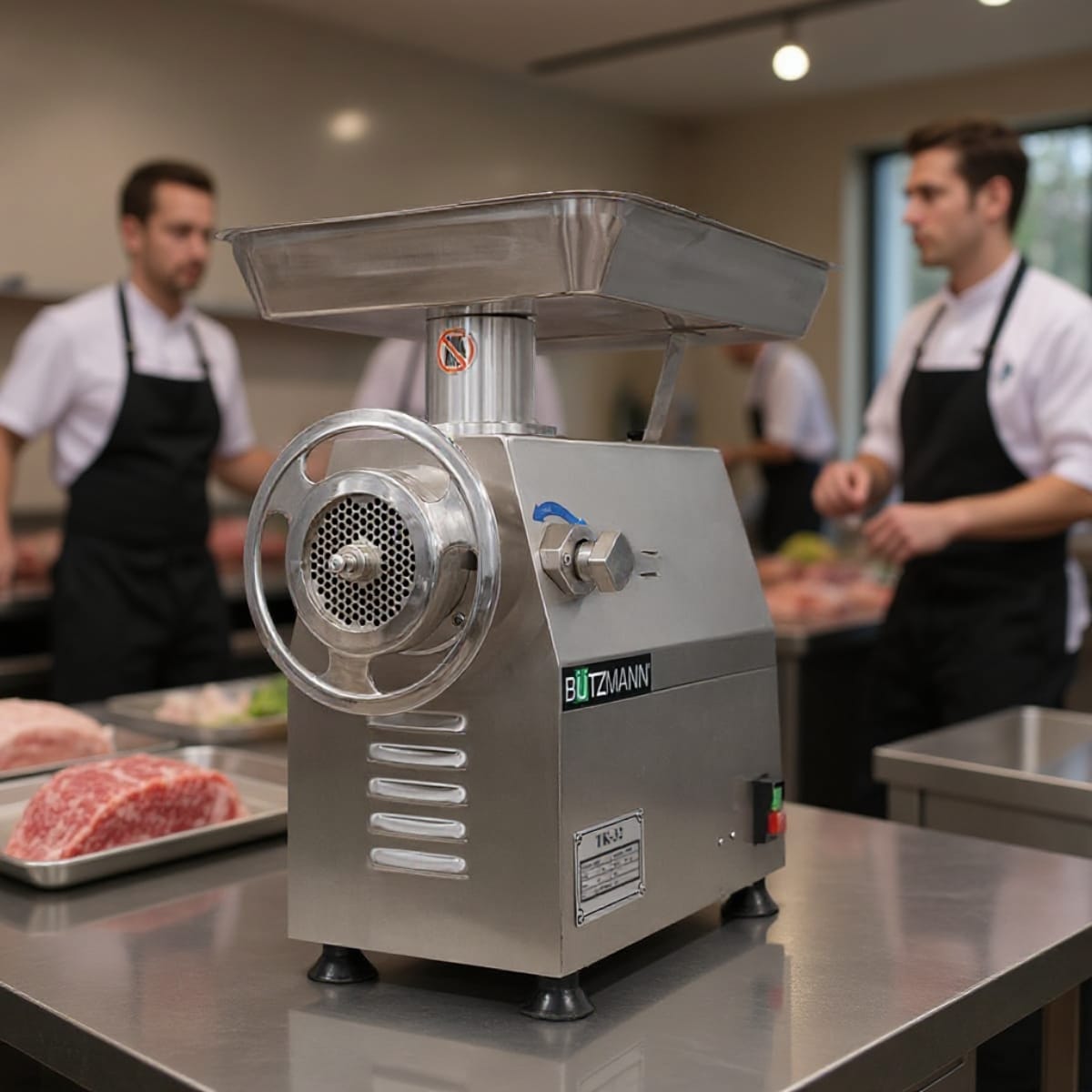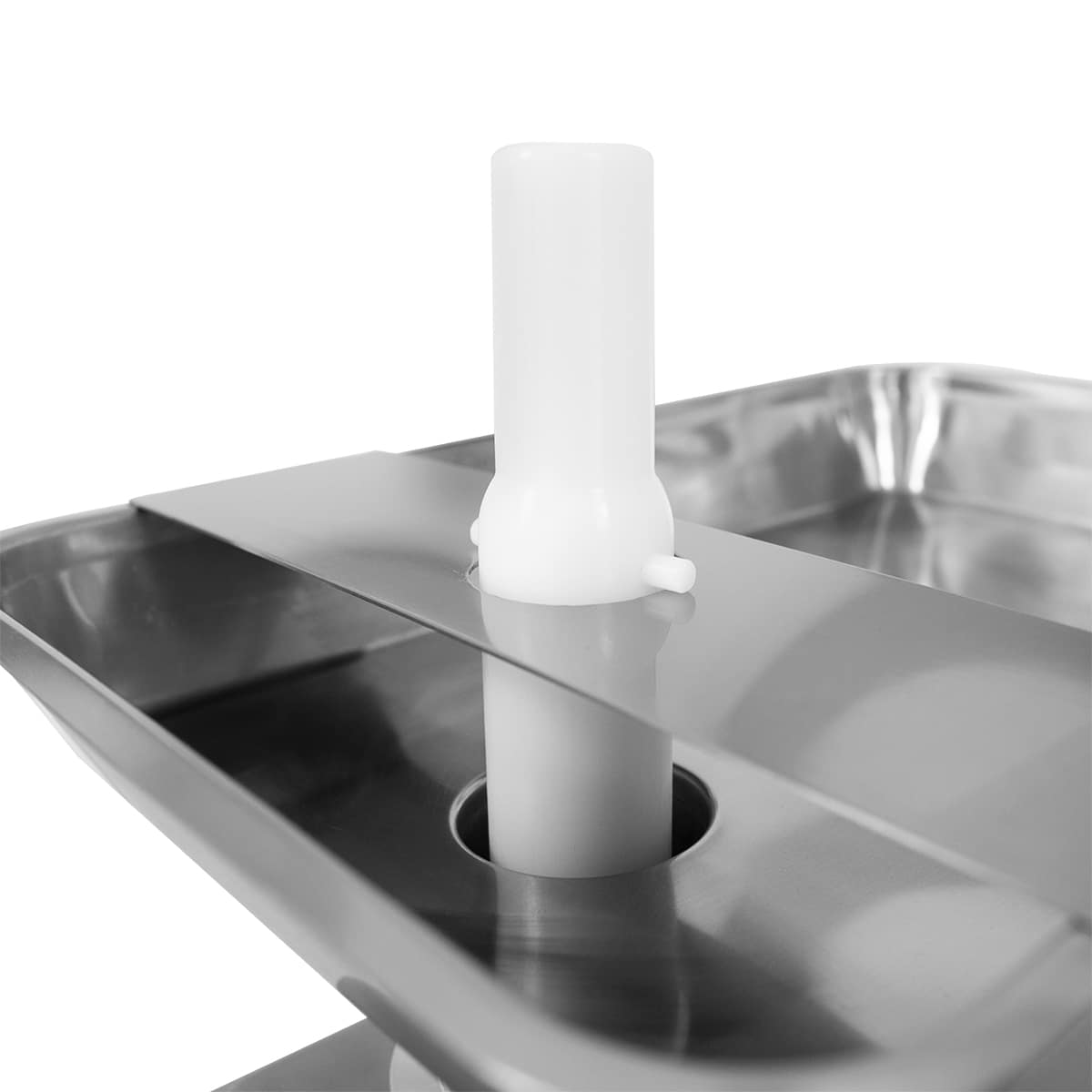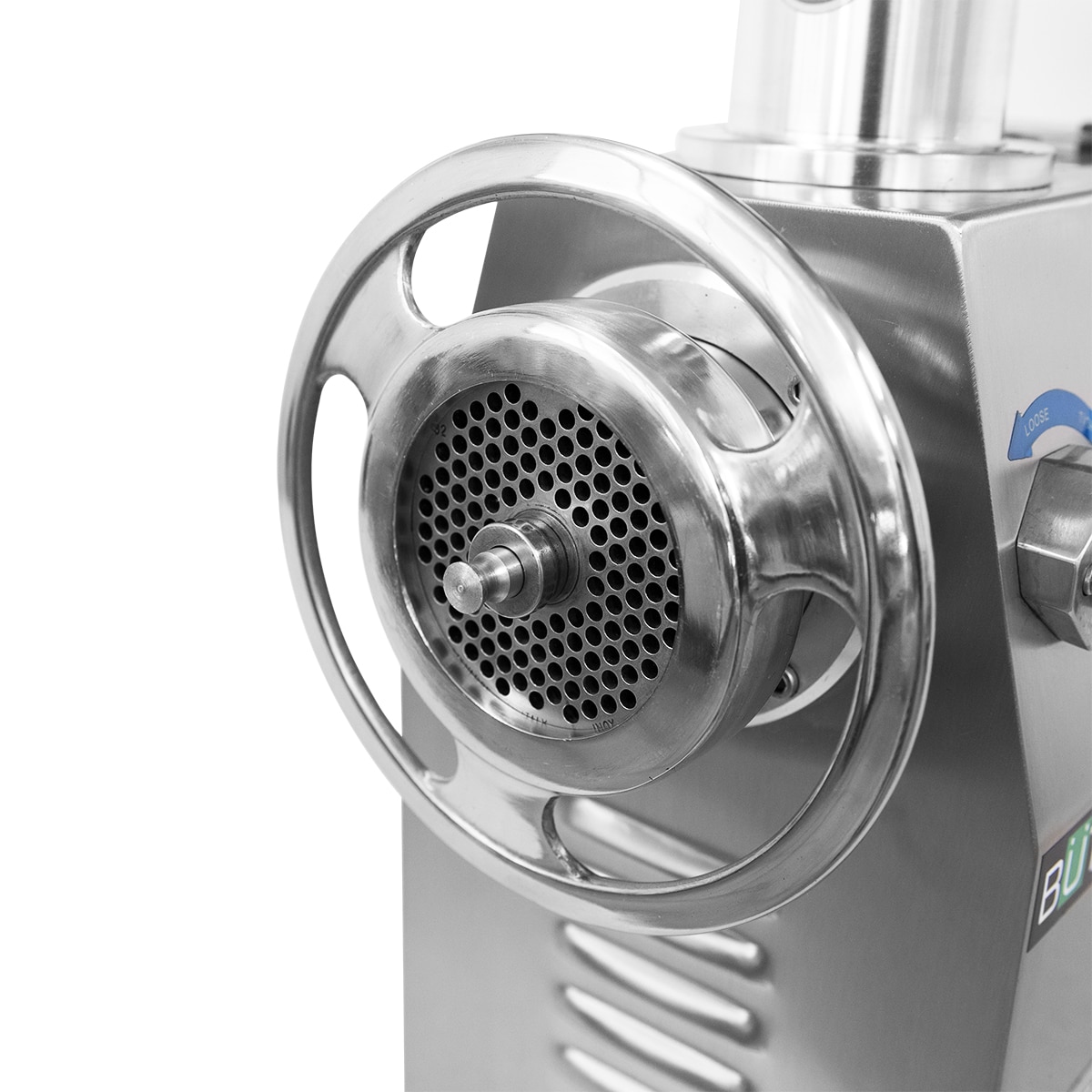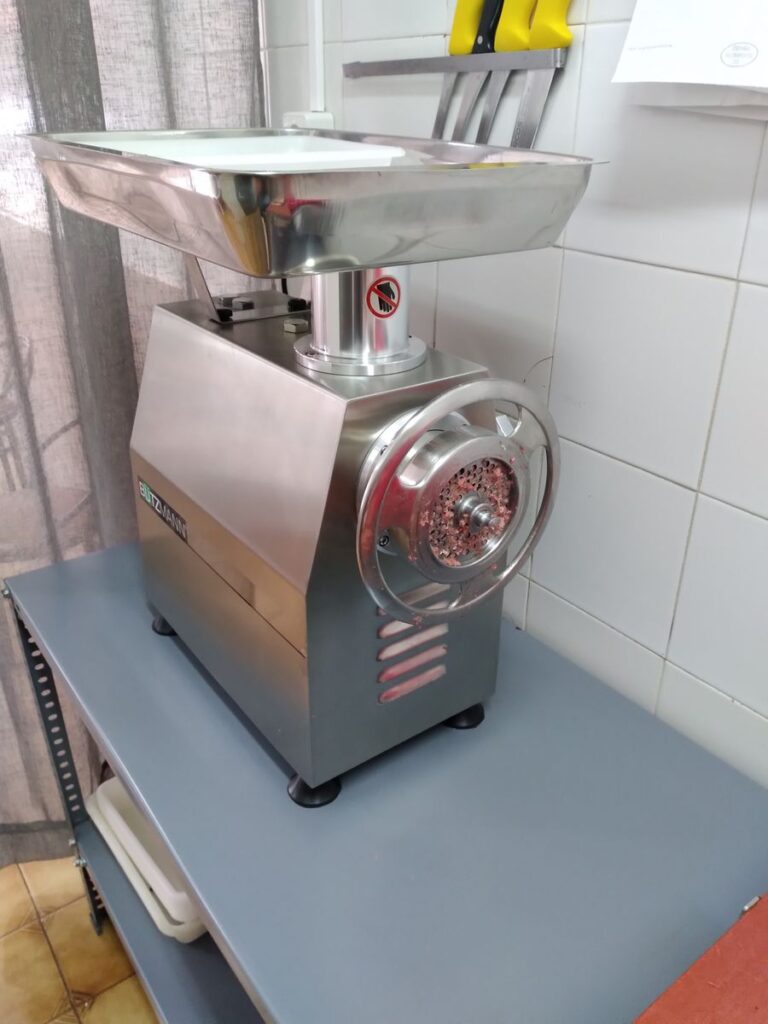 – Fabricado inteiramente em aço inoxidável – Corpo da tremonha e do picador amovível do bloco do motor – Equipado com 2 lâminas, 2 placas (orifício de 6 e 8 mm), tabuleiro de recolha e empurrador.