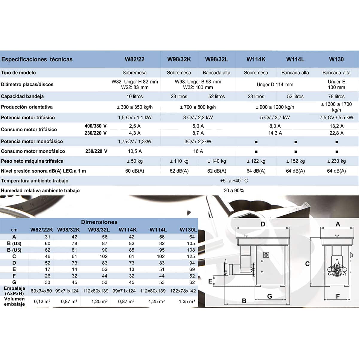 | Dimensión Total | U3: 640×1.050×1.250 mm, U5: 640×1.080×1.250 mm |