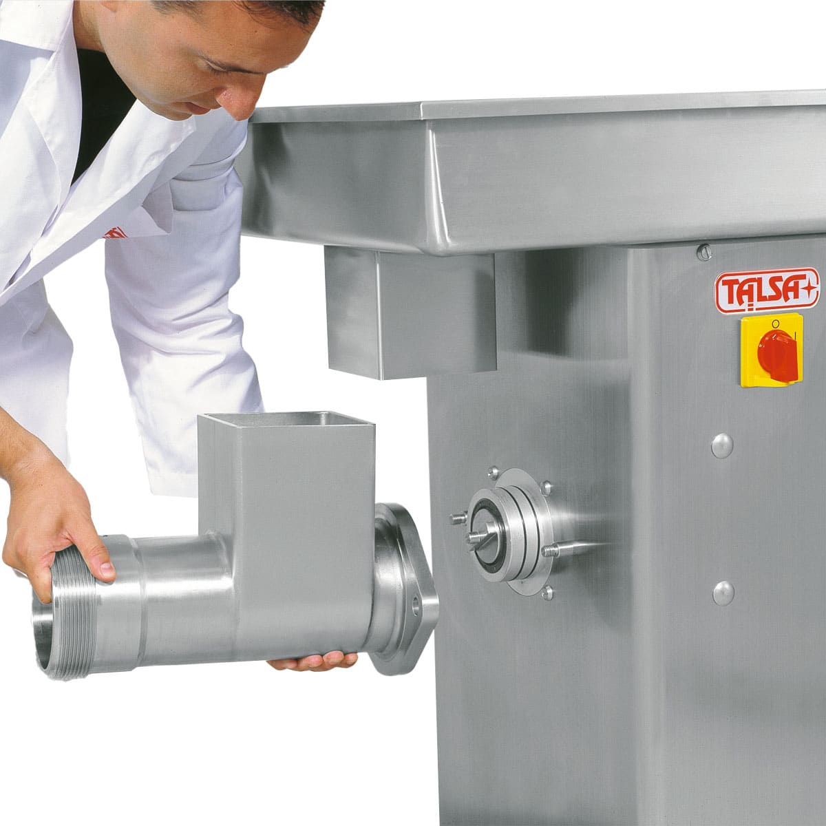 Moinho semi-industrial feito inteiramente de aço inoxidável.