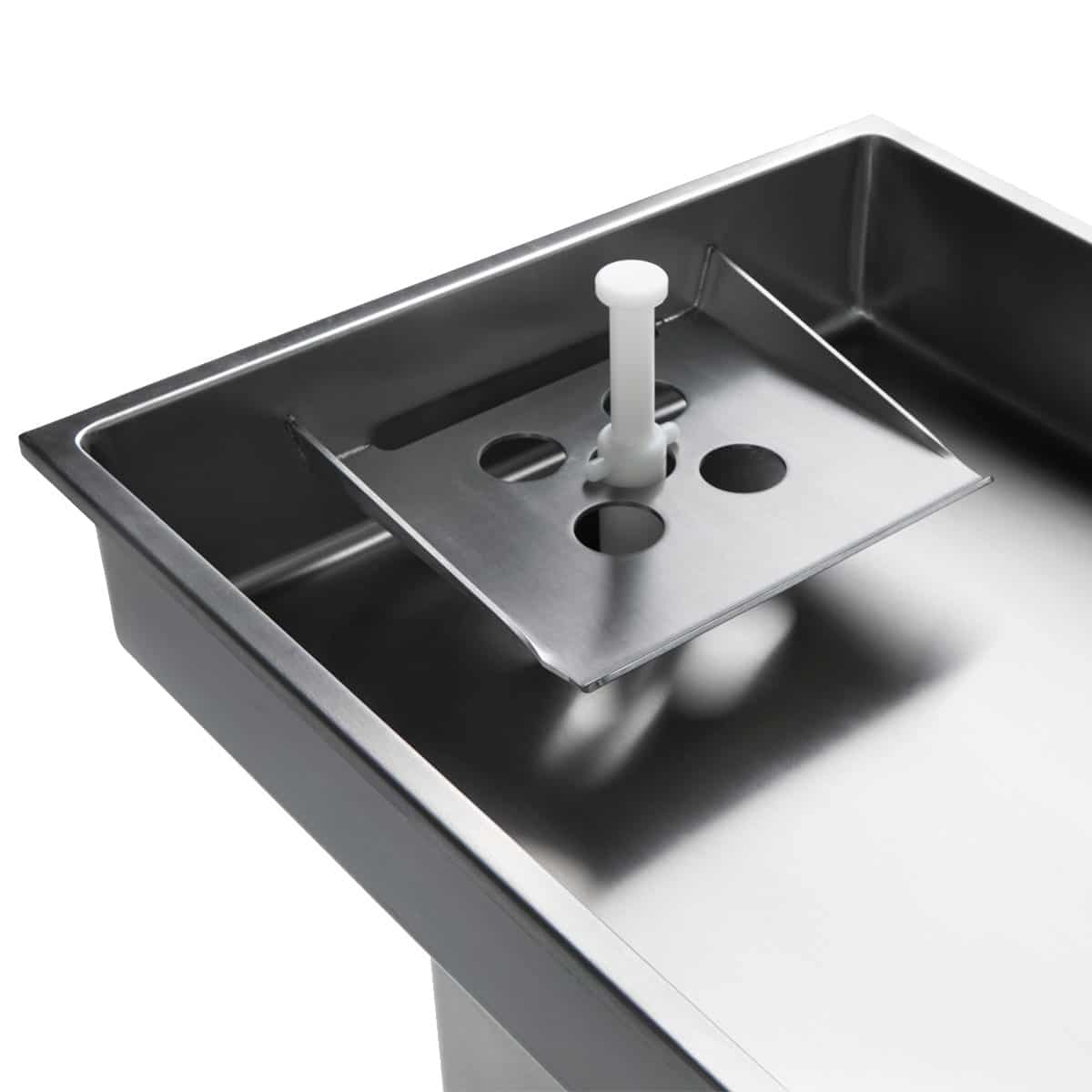 – Tabuleiro superior com grelha de proteção das mãos CE.