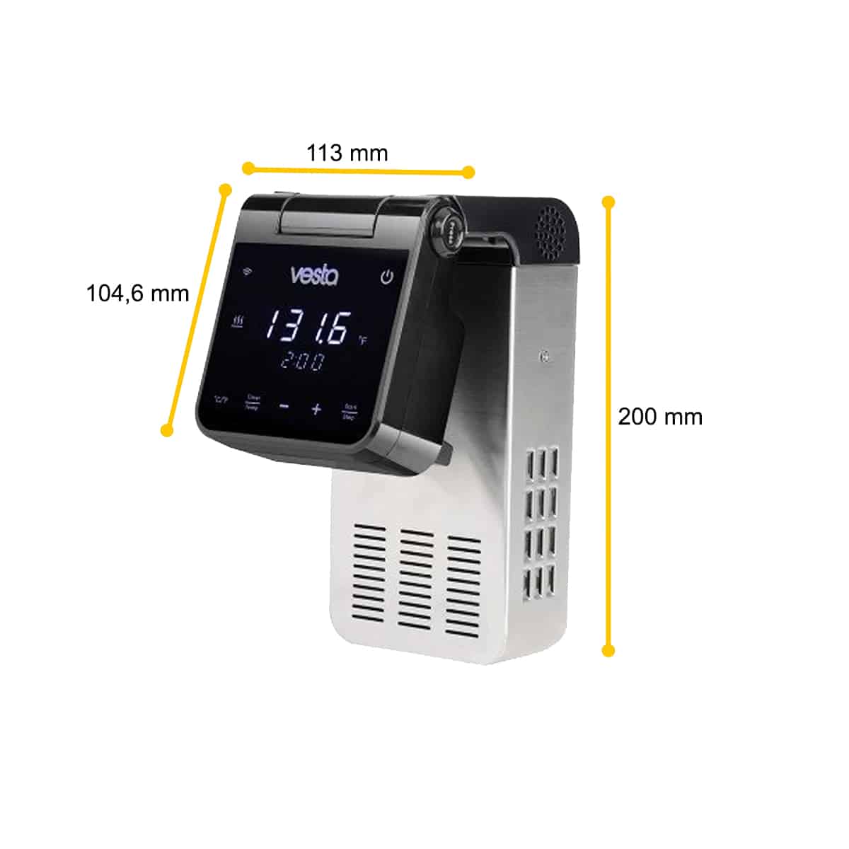O modelo de termocirculador inteligente Vesta SV81 com ligação Wi-Fi 2G tem um design único “flip-up” e um grande ecrã digital visível à distância, facilitando a monitorização do cozinheiro dentro e fora da cozinha.