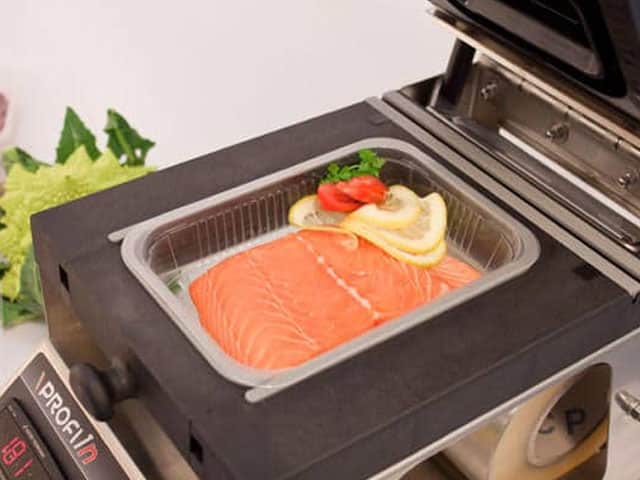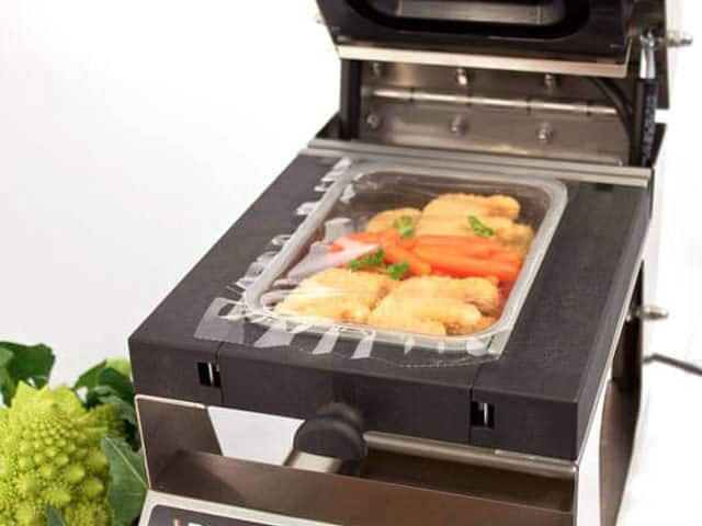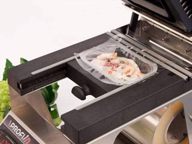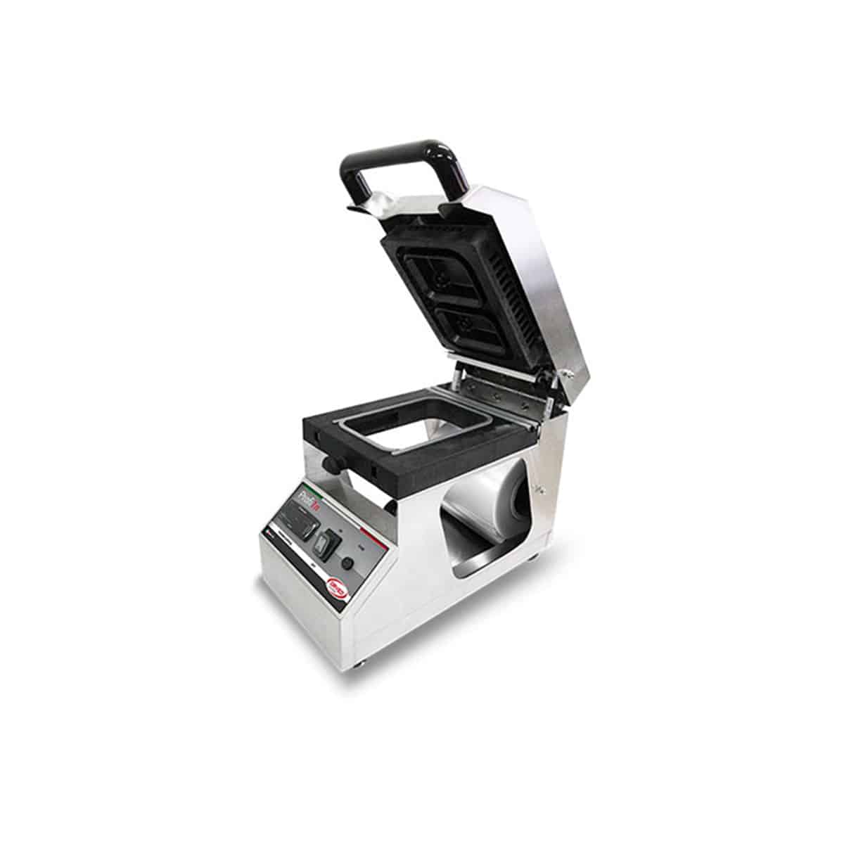 CARACTERÍSTICAS: Corpo: Aço lacado Comandos: Electromecânicos Capacidade dos tabuleiros: 1 Possibilidades: Graças à opção de fechar ou abrir a cavidade do molde, é possível soldar tabuleiros de 192×137 mm. ou 137×96 mm. Dimensões exteriores: 240 x 460 x 320 mm. Tensão: 220 V.-50Hz. II Potência: 350 W. Peso líquido: 12,5 Kg. Outras caraterísticas: Regulação eletrónica da temperatura. Soldadura perfeita mesmo na presença de líquidos e gorduras. Programação digital da temperatura de soldadura. Equipamento: Inclui uma bobina de filme standard